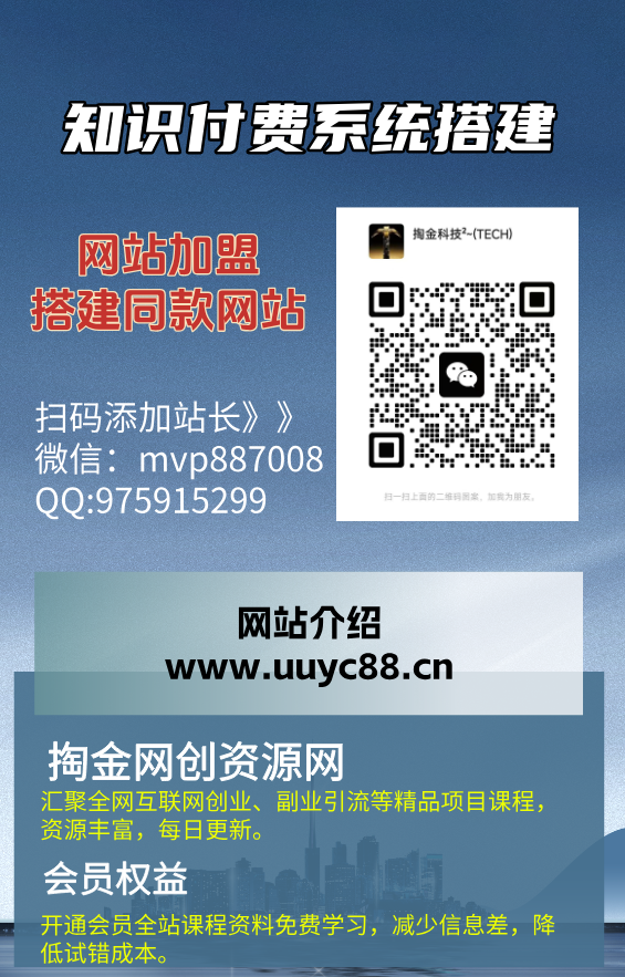 加盟掏金网创,加盟搭建同款知识付费资源网站,实现长期稳定被动收入~